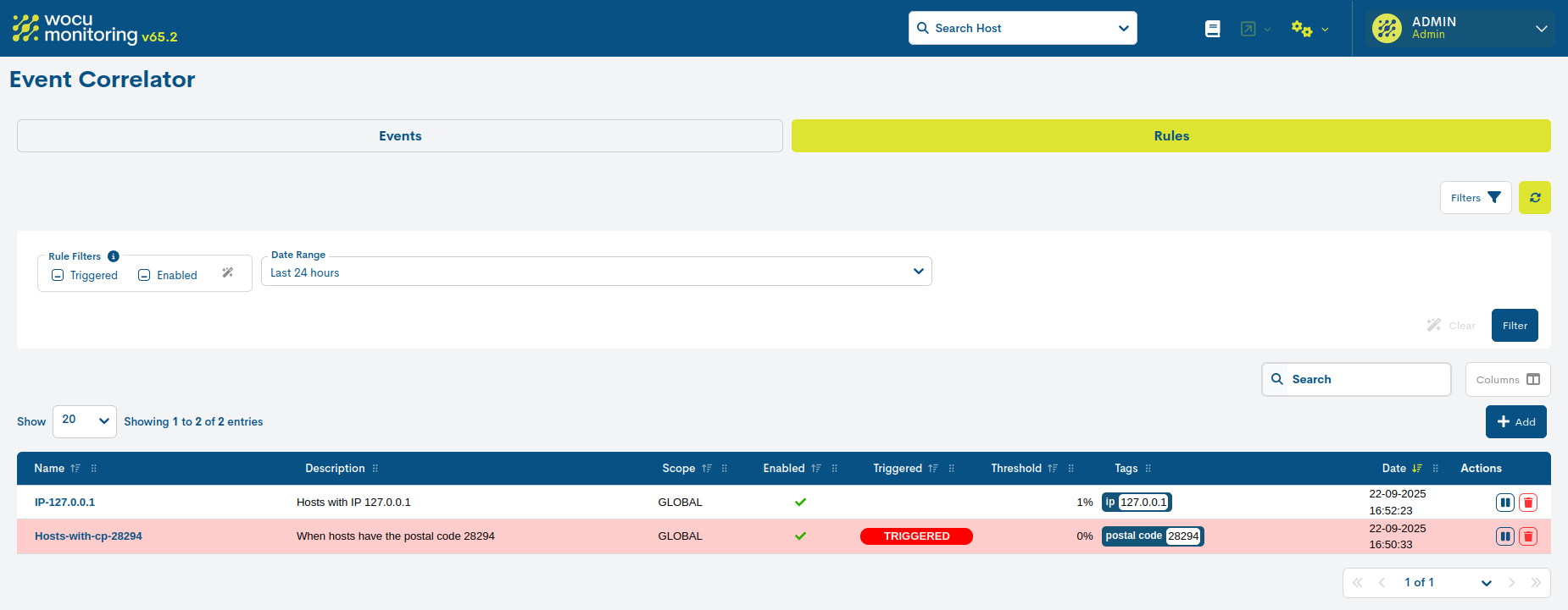 Correlador de eventos: Concéntrate en lo que importa, cuando importa. Detecta caídas masivas en tiempo real mediante reglas de correlación basadas en etiquetas personalizadas. Segmenta por cliente, dominio o tecnología, aplica umbrales por porcentaje y genera eventos interactivos que reducen el ruido y aceleran la respuesta, todo desde una vista global con notificaciones integradas.